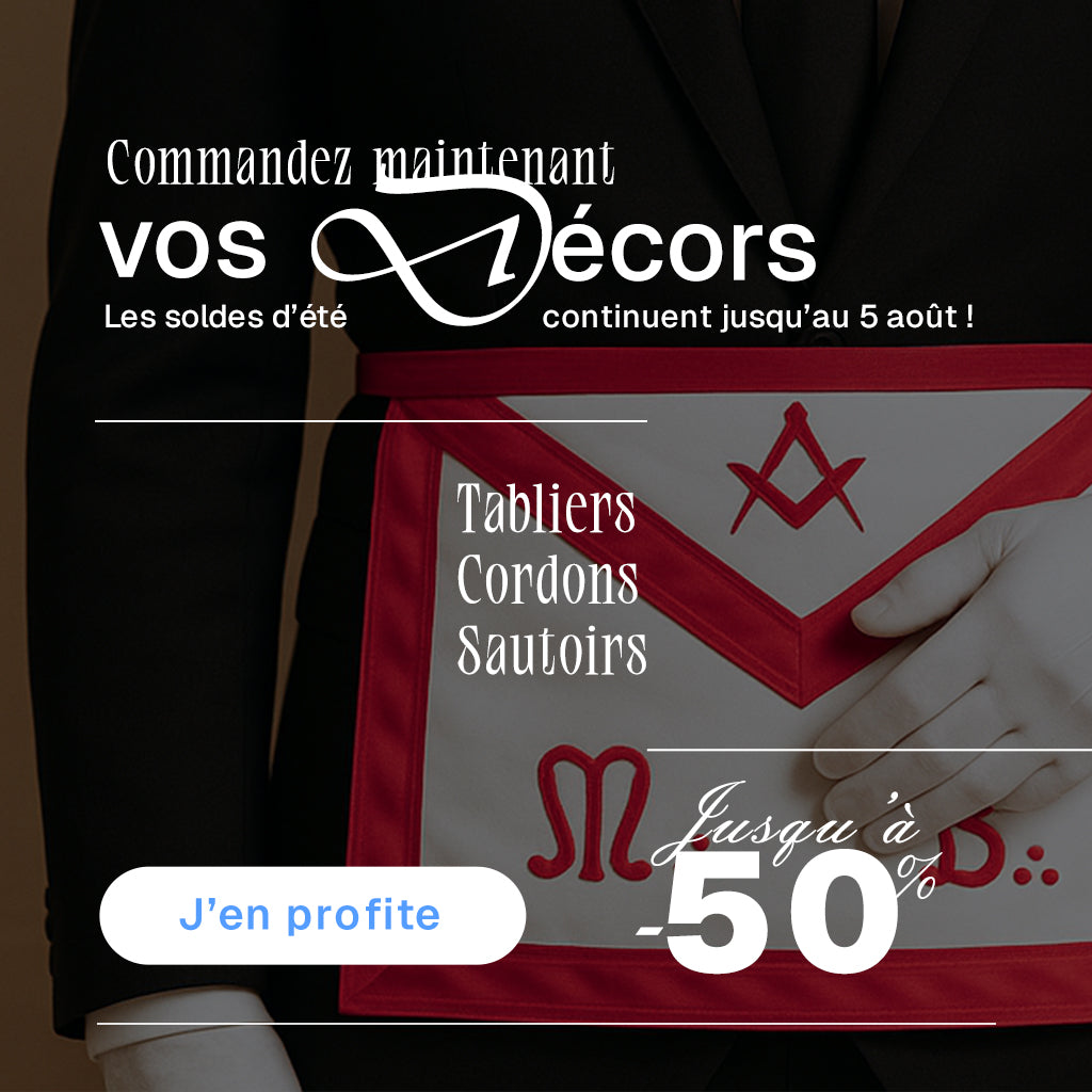 Bienvenue sur Nos Colonnes, votre boutique dédiée aux décors maçonniques et accessoires indispensables aux loges. Découvrez une sélection complète de tabliers, sautoirs, bijoux, gants et décors de rite, conçus dans le respect des traditions maçonniques.