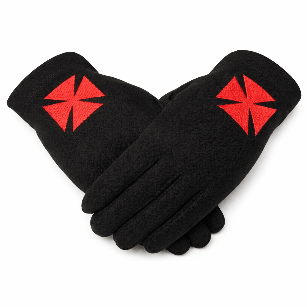 Gants Maçonniques noirs Chevaliers Templiers (Knight Templars) avec Croix Pattée rouge