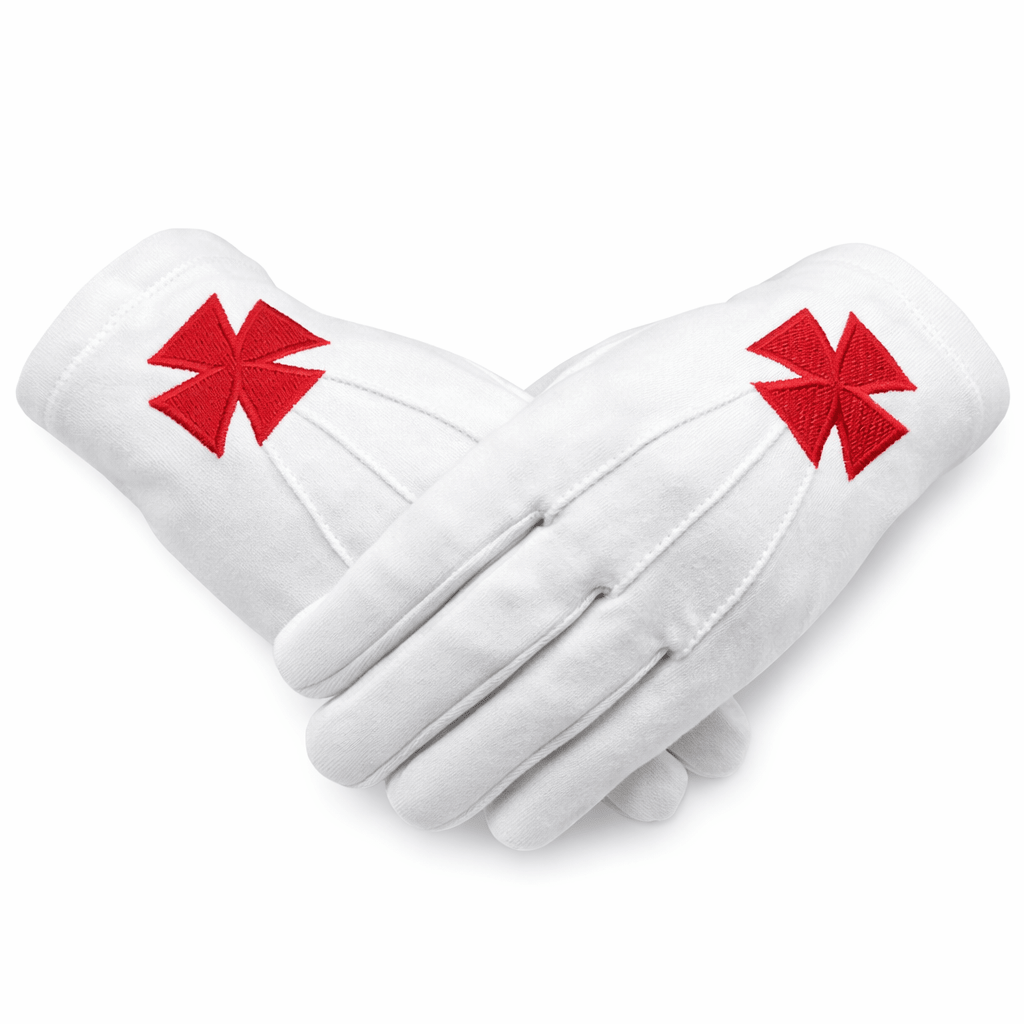Gants Maçonniques blancs Chevaliers Templiers (Knight Templars) avec Croix Pattée rouge
