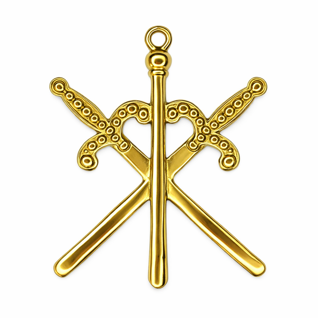 Magnifique bijou de Maître des Cérémonies qui reprend le symbole de la Canne qui ne le quitte jamais quand il se déplace dans le Temple.
