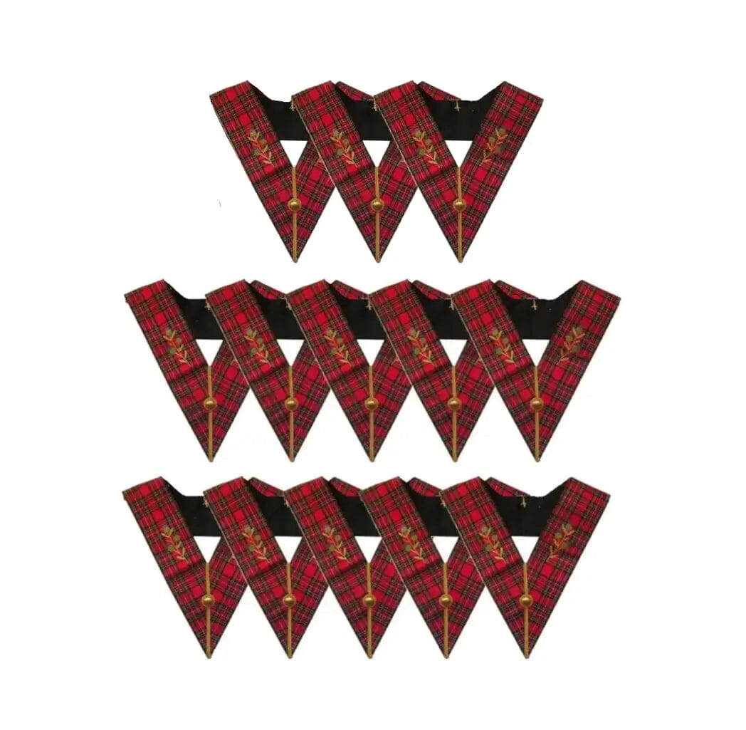 Superbes sautoirs maçonniques d’Officier en Tartan  "Royal Stewart"  avec un bossoir doré, une soutache dorée, deux Chardons et un dos noir
