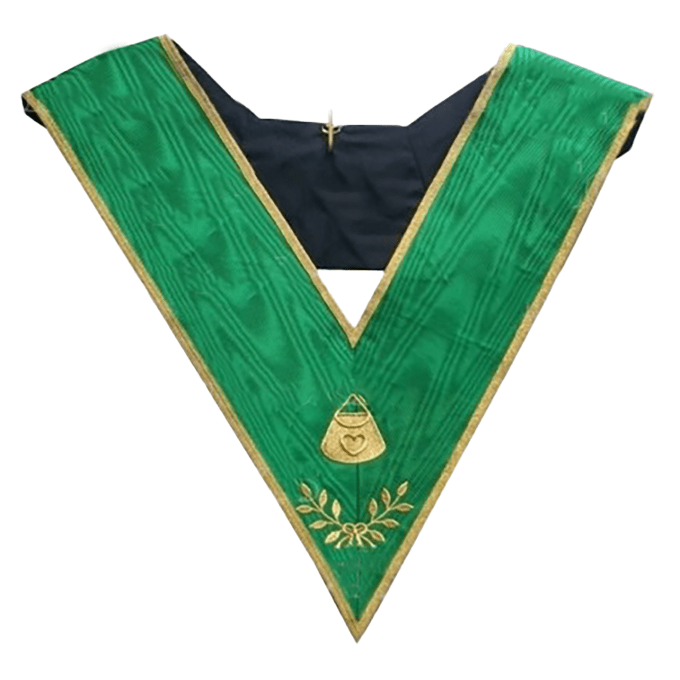 Superbe sautoir d’Hospitalier en soie naturelle de couleur verte liseré d’or et décoré de l’insigne de la fonction brodé or dans une finition haut de gamme. Le dos noir est doublé pour un meilleur confort, avec une impression funèbre.