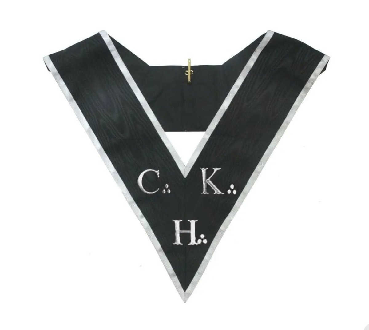 Wunderschön Sautoir von Kadosh-Ritter30° Grad REAA, in Naturseide schwarz mit weißer Borte und verziert mit den folgenden Symbolen den Buchstaben "CKH" oder "CKS". in einer hochwertiges Finish.
