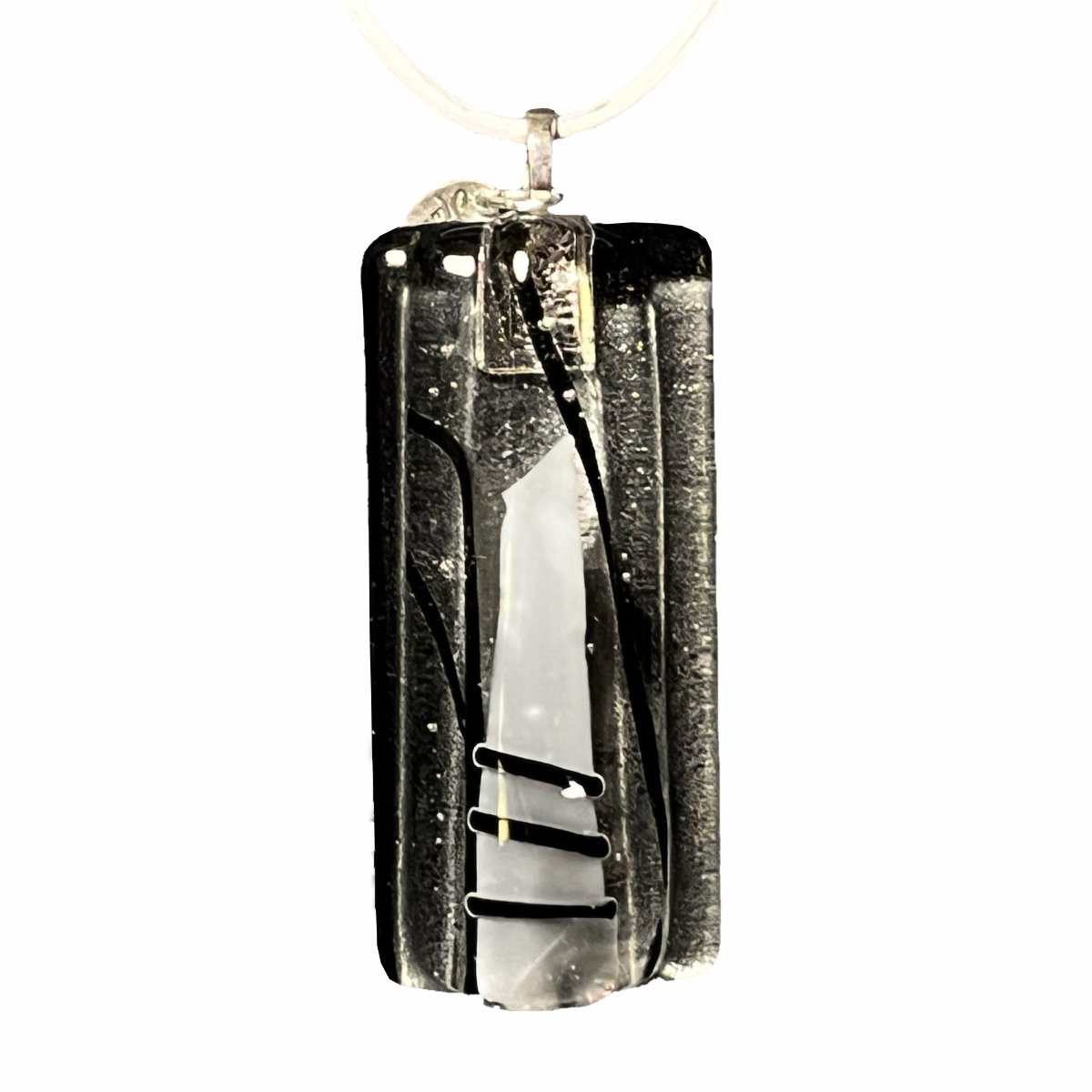 Schwarzer und weißer Anhänger aus Fusionsglas Nr. 11