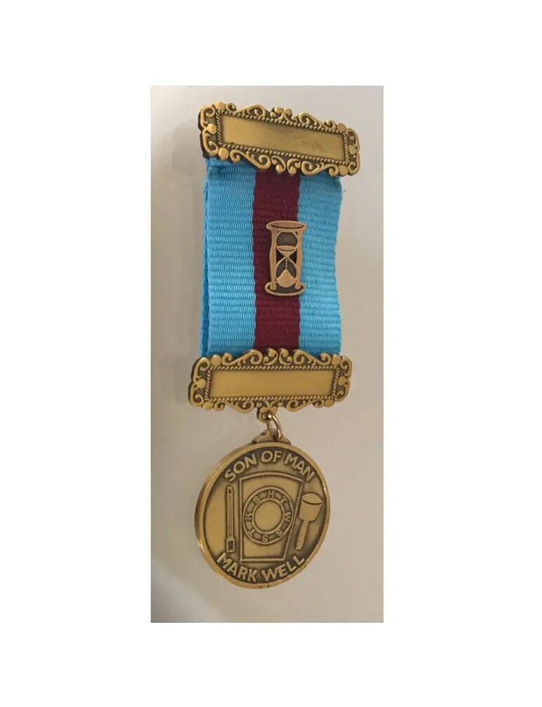 Wunderschön Brustschmuck eines MarkenmitgliedsMit bordeauxrotes Band mit blauer Umrandung. Die Metallteile sind bronzefarben.