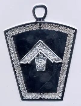 Wunderschön Schmuckstück von Past Master das den Winkel über einem Schlussstein auf einer Medaille in Form eines Schlusssteins.