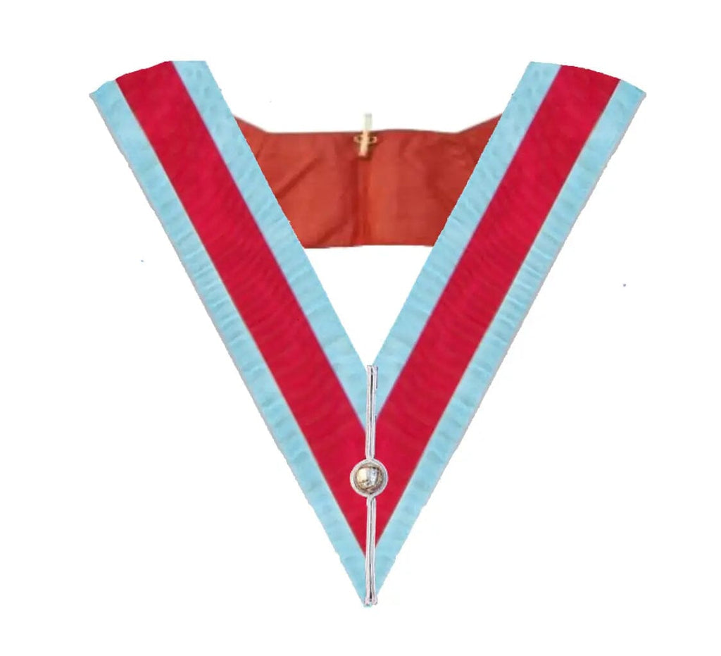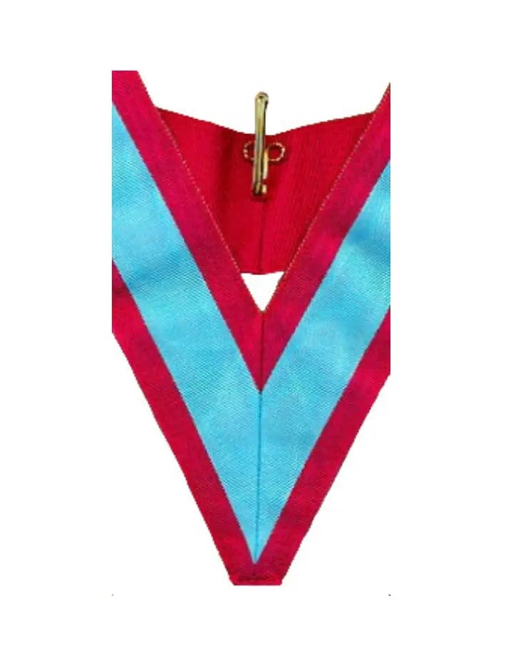 Wunderschöne Sautoir d'Officier aus Naturseide Farbe rot mit hellblauem Rand, mit einem silbernen Davit, in in einer hochwertige Ausführung. Der rote Rücken ist gefüttert für einen besseren Komfort.