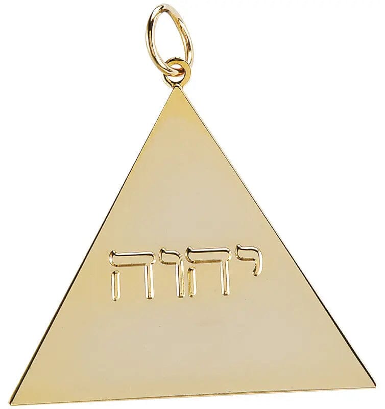 Wunderschön Schmuckstück des Dreimaligen Mächtigen Meisters (TFPM), Vorsitzender des 14°-Workshops von Memphis-Misraïm, mit der Darstellung eines Dreieck auf dem das Wort Tetragramm steht.
