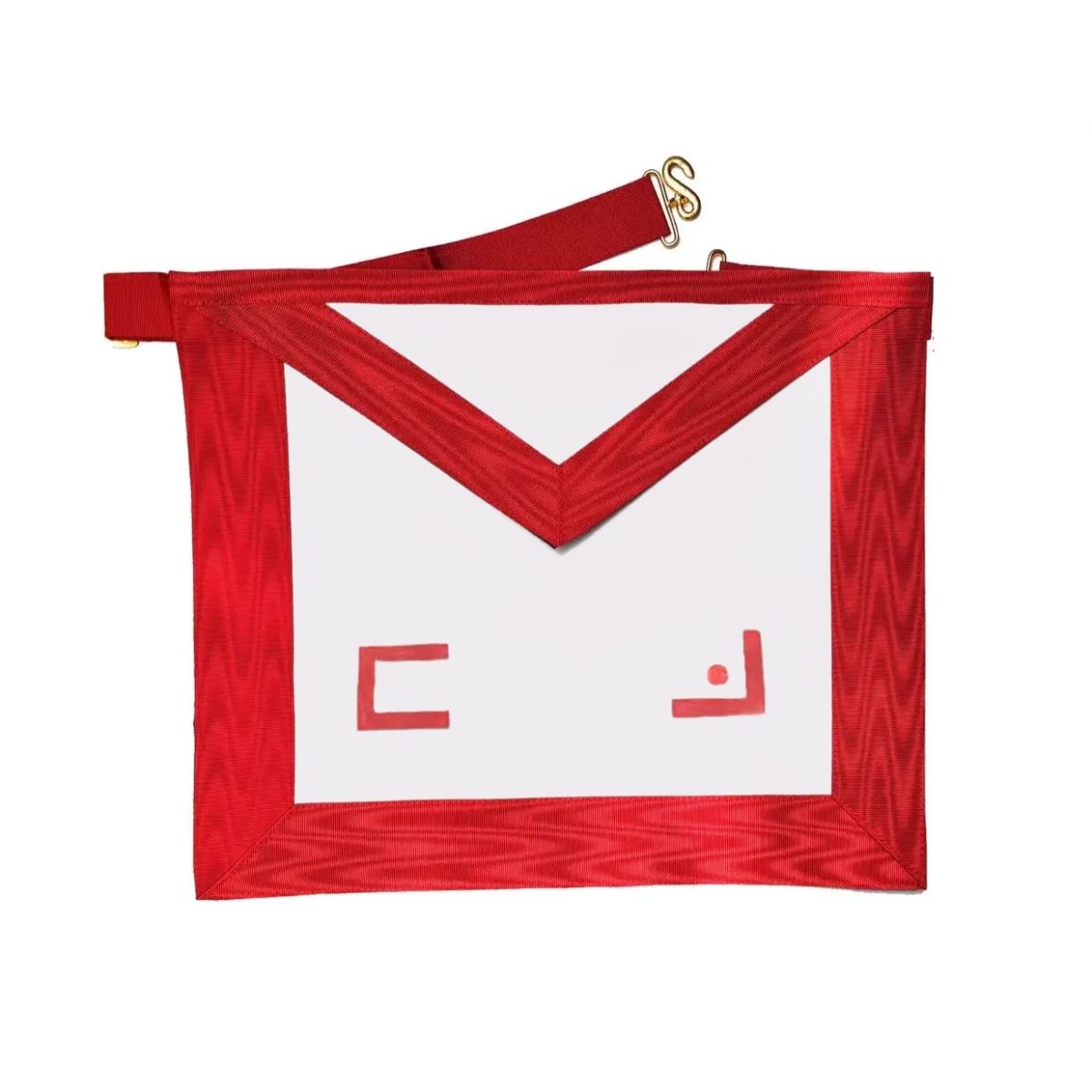 Diese wunderschöne Freimaurerschürze Die handbestickte Schürze ist mit einem Motiv verziert. Bordüre aus Band rot und den Buchstaben M:. B:. im freimaurerischen Alphabet.