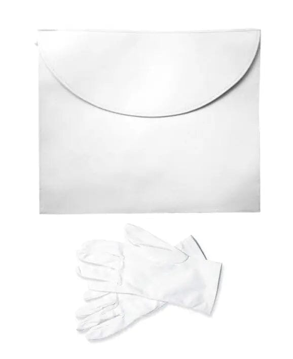 Magnífico delantal masónico para el nuevo iniciado, en piel genuina. Allá doLa estufa blanca es ajustable Con un cierre de serpiente de bronce. Allá babero Este redondeado y el atrás Este blanco, con Dos bolsillos traseros Para guantes.
