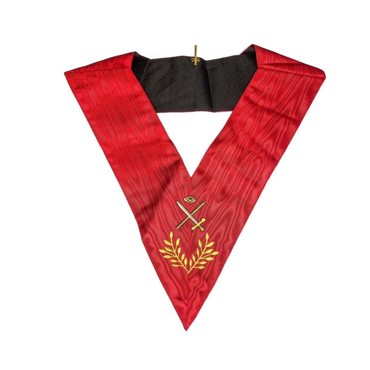 Impresionante collar largo Gran experto de Knight, 18° grado reaa, en seda natural rojo y decorado con 2 bordado (emblema de las ramas de la oficina y acacia) En a acabado de alto nivel. EL espalda negra Este doble Para una mejor comodidad.