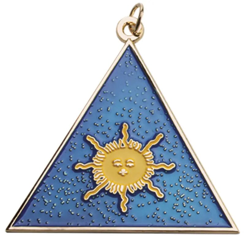 Espléndido Joya de 12 °, 20 ° y 27 ° de grados del gran orden egipcio (Goe), representando un Sol en uno fondo azul.