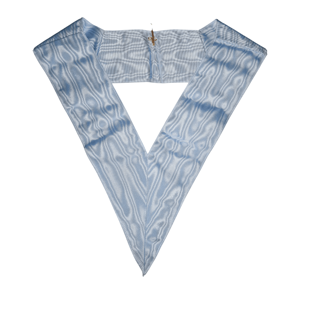 Collar largo de oficial en seda natural azul celeste. El dorso azul claro está forrado para mayor comodidad.