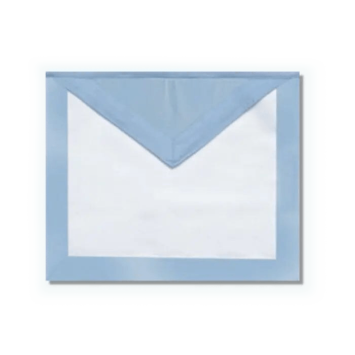Este Magnífico delantal masónico maestro est bordé d’un large cinta azul cielo y el babero Este de la même couleur.