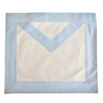 Este Magnífico delantal masónico maestro está bordeado por un gran cinta azul cielo.