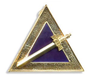 Espléndido Joyería del Capitán Velo púrpura representando un Espada sobre un fondo morado colocado en un Triángulo.