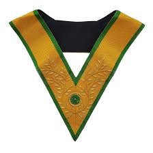 Magnifica collana lunga massonica di Consulente per l'ordine del Grand Oriente di Francia (Godf). Questa lunga collana è composto da a Giallo Moiré Ribbon Blee of Green. È decorato con un rosetta verde circondato da overoboros e lettera G.O.D.F., Di due rami acacia, ed è raddoppiato con nero con funerale.