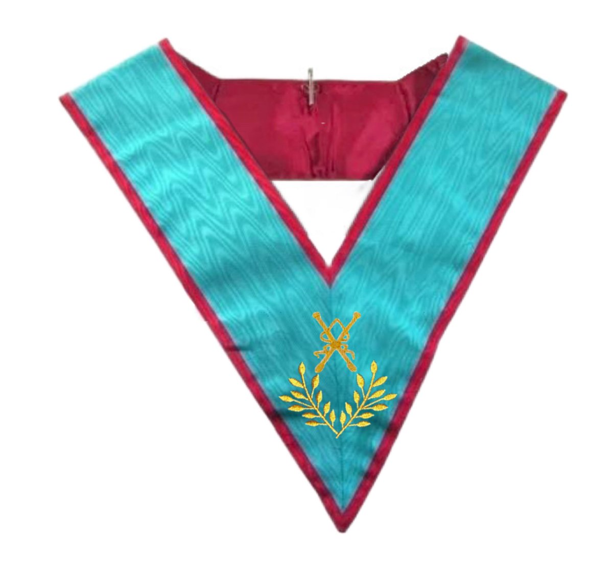Sbalorditivo Collana del maestro cerimoniale In seta naturale colorato Bordo blu turchese rosso e decorato con Il distintivo della funzione ricamata d'oro In UN Finitura alta. La parte posteriore è raddoppiare Per un migliore comfort.