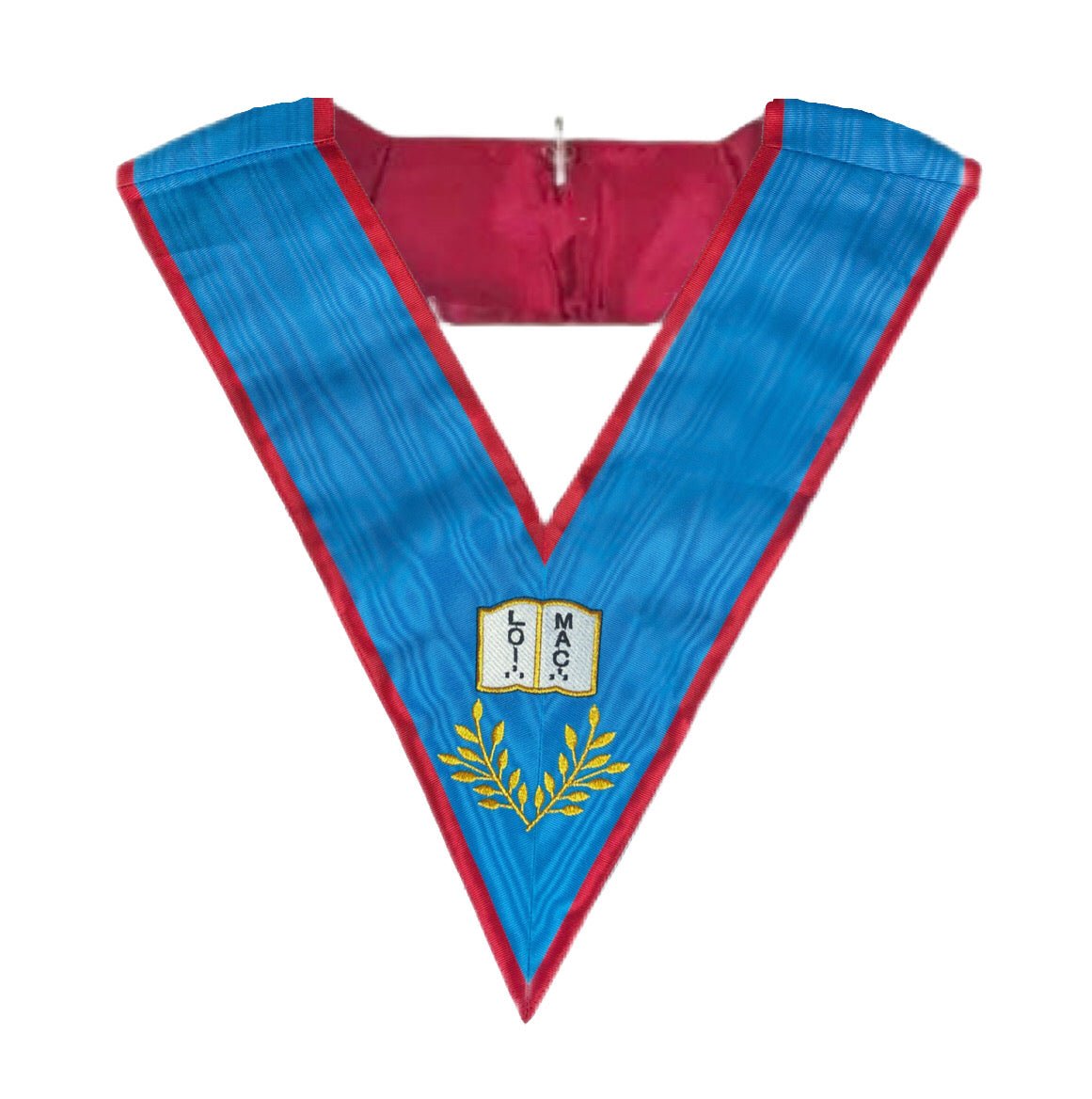 Sbalorditivo altoparlante In seta naturale colorato Bordo blu turchese rosso e decorato con Il distintivo della funzione ricamata d'oro In UN Finitura alta. La parte posteriore è raddoppiare Per un migliore comfort.