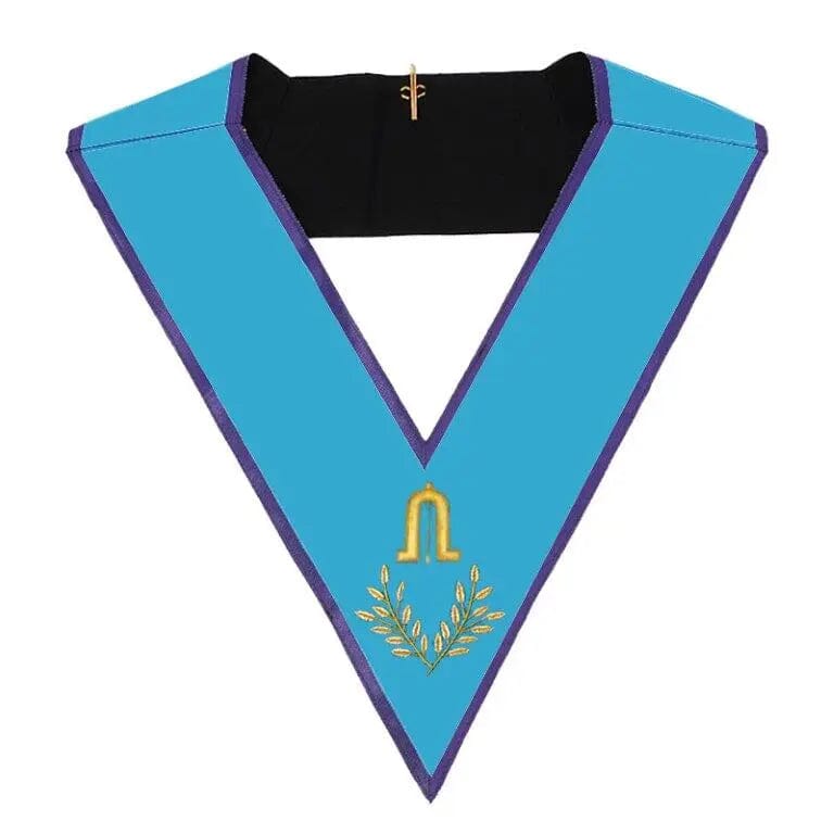 Sbalorditivo La collana del secondo supervisore In seta naturale colorato Turchese blu liseré de viola e adornato con Il distintivo della funzione ricamata d'oro in una finitura alta.