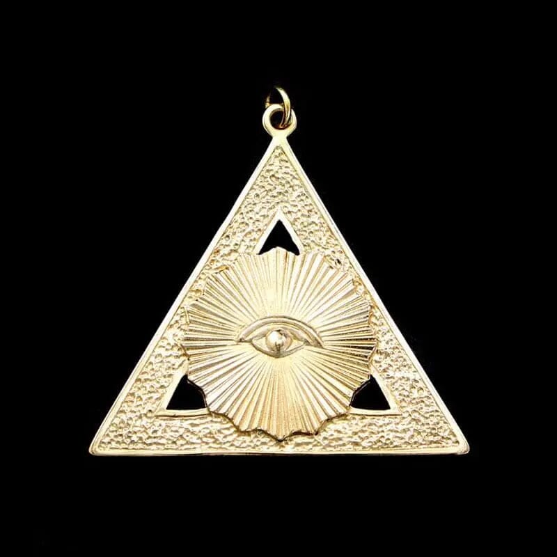 Bellissimo Gioielli Sun Knight of the Sun rappresentante a triangolo circostante a Eye radiante.
