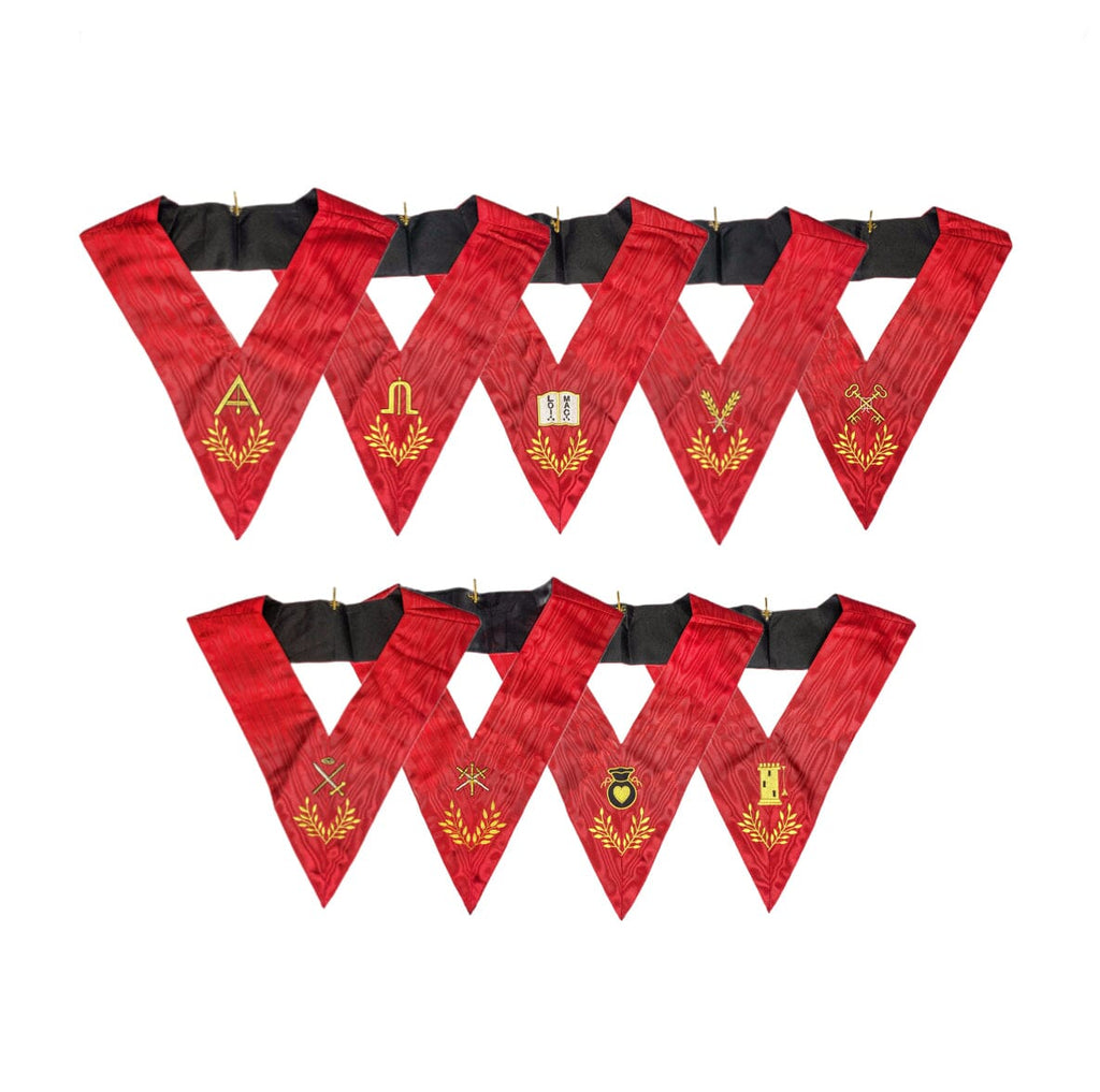 Sbalorditivo Pacchetto di 9 ufficiali Disponibile in seta naturale di colore rosso decorato con 2 ricami (emblema dell'ufficio e rami di Acacia). IL schiena nera ornato è raddoppiare Per un migliore comfort.