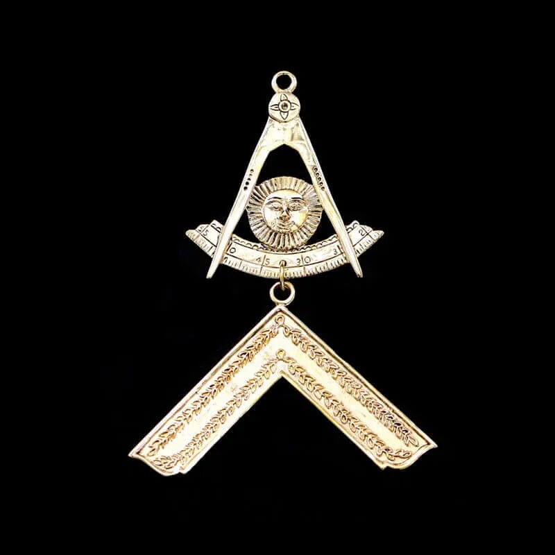 Bellissimo Venerabile Master's Jewel (versione 1), che rappresenta a Bussola aperto a a Arco del cerchio e supervisionando il Sole, a cui è sospeso un quadrato.