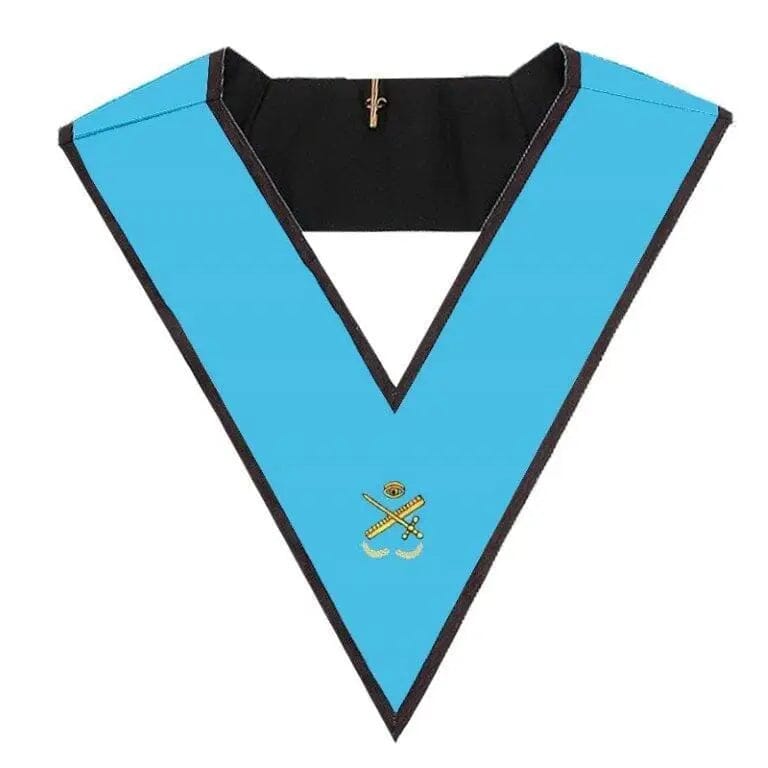 Superbe sautoir d’Expert du 4° degré REAA en soie naturelle de couleur bleue avec liseré noir et orné de l’insigne de la fonction et de rameaux d’Acacias brodés or dans une finition haut de gamme. Le dos noir est doublé pour un meilleur confort.
