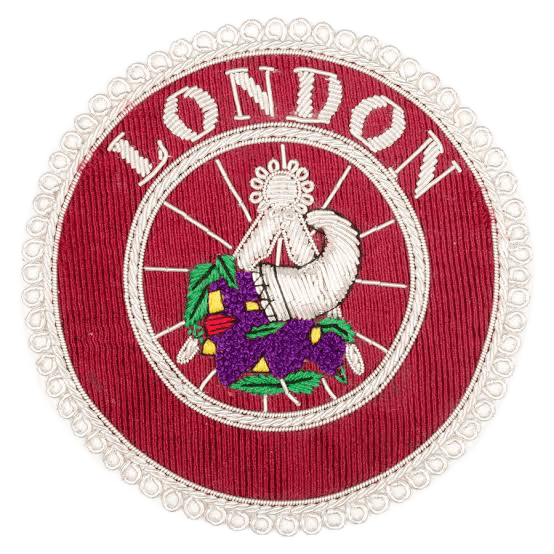 Ce magnifique tablier maçonnique d’Intendant Provincial, brodé à la main est bordé d’un ruban de couleur bordeaux et orné de 3 rosettes et 2 pendeloques.