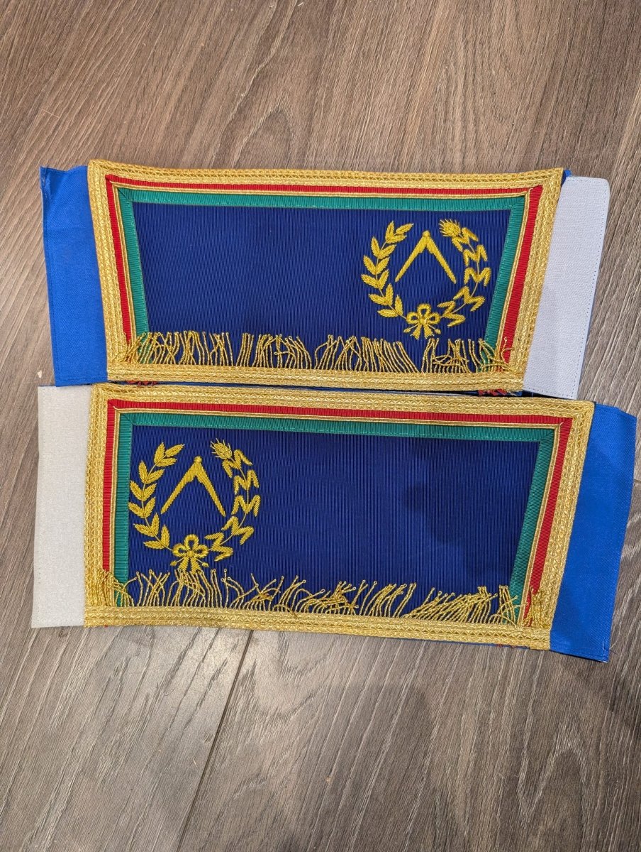 Par magnífico de punhos de grandes oficiais nacionais, adornado com a bússola e o quadrado cercado por louros e trigo, além de uma margem dourada.