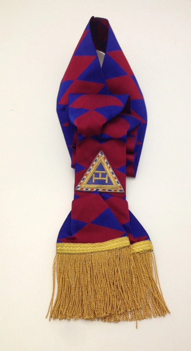 Esplêndido cachecol, ou arnês, provincial, composto de diamantes azuis e vermelhos com Fingeras douradas e adornado com triângulo Com o tau triplo em um fundo azul, Em um Acabamento alto.