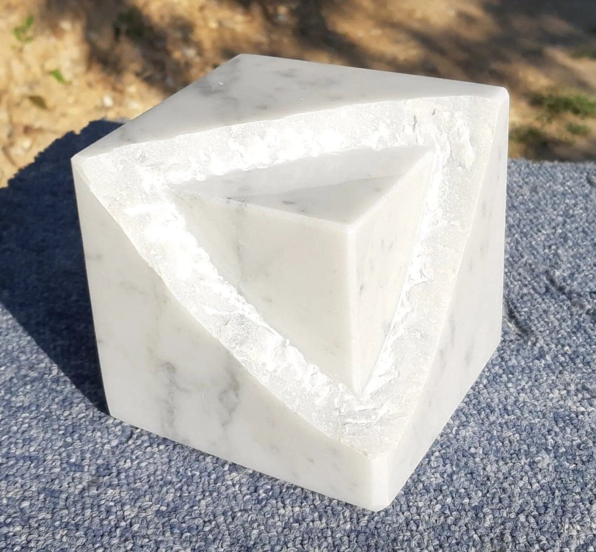 A pedra crua em Carare Marble, onde em calcário bege revela uma pedra polida, como o trabalho de todos os maçons.