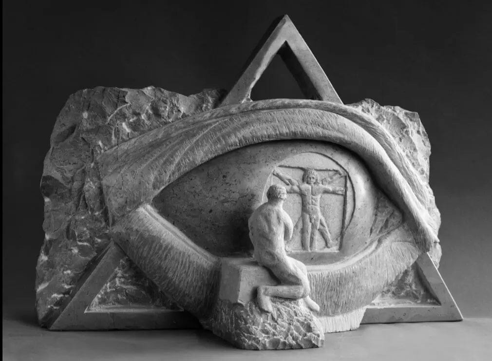 - Uma escultura "o escultor diante da proporção divina" no calcário bege.