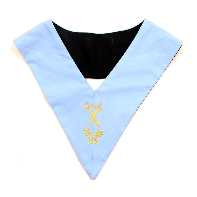 Esplêndido Colar de mestre cerimonial em seda natural colorido azul -celeste E adornado de o crachá do Função bordada em ouro, Em um Acabamento alto. O voltar Leste dobro Para melhor conforto.