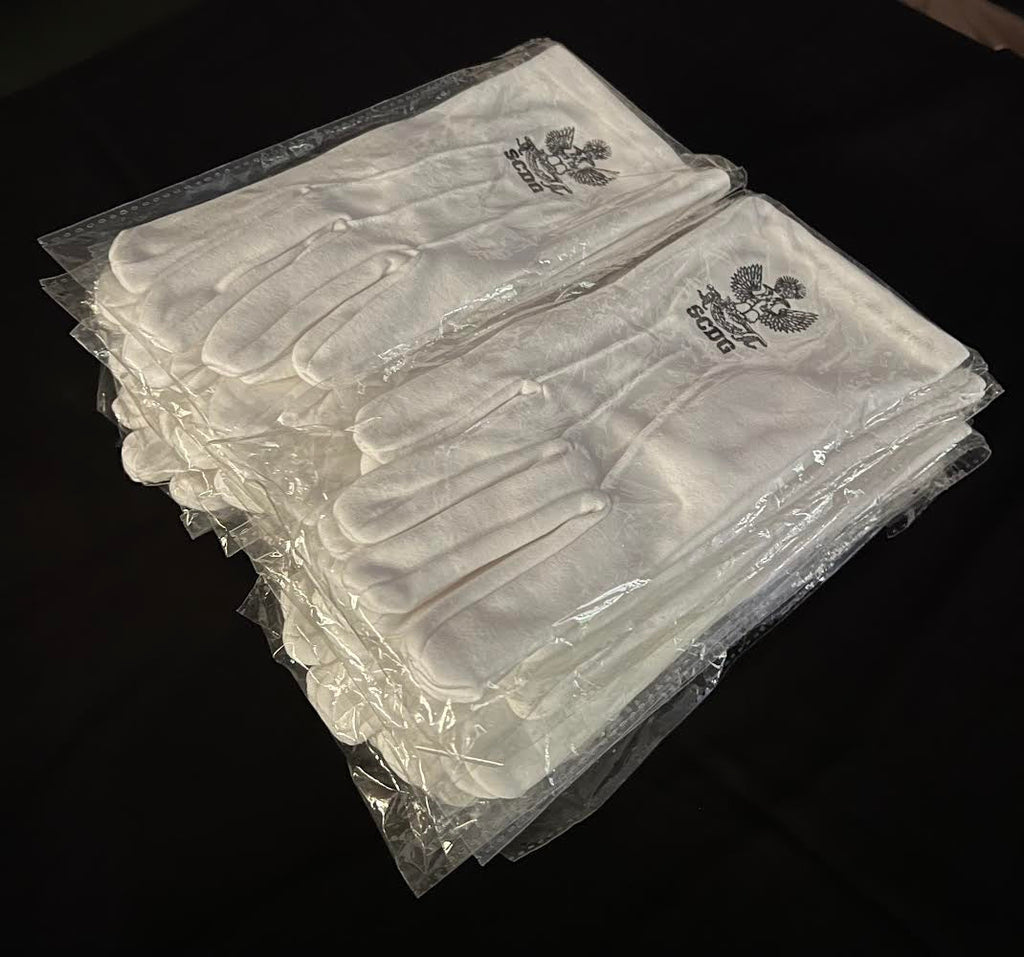Pacote de 18 pares de luvas brancas personalizadas para o Supremo Conselho dos Gauleses (SCDG).