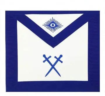 Esse Magnífico avental maçônico de Guarda interior, bordado à mão e bordado por Azul no exterior, está decorado com olho e duas espadas cruzado.