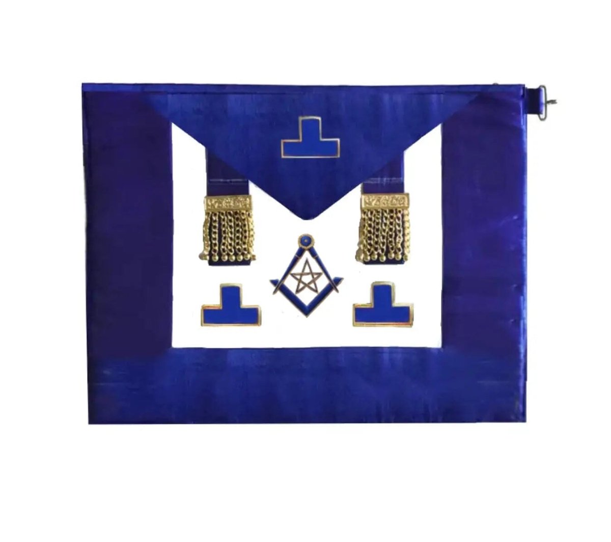 Esse Magnífico avental maçônico em Couro genuíno à mão bordada é decorada com 3 taus E 2 pingentes, assim como o emblema da função